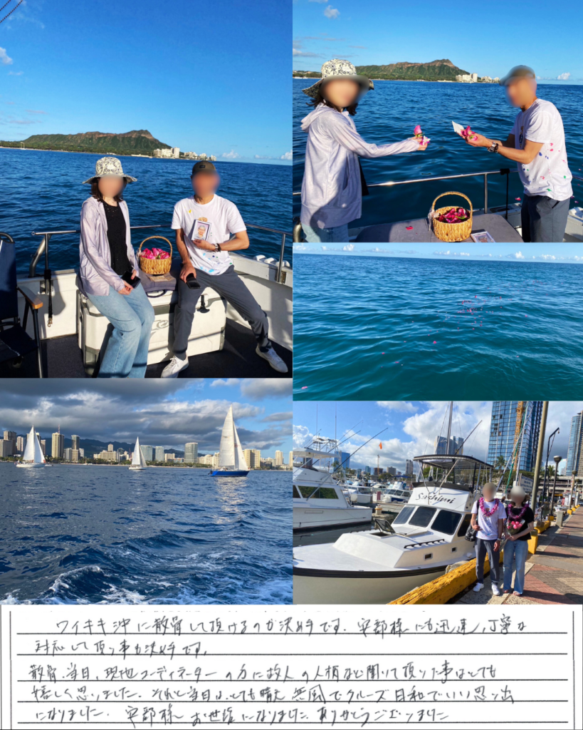 ワイキキ沖に散骨して頂けるのが決め手です。